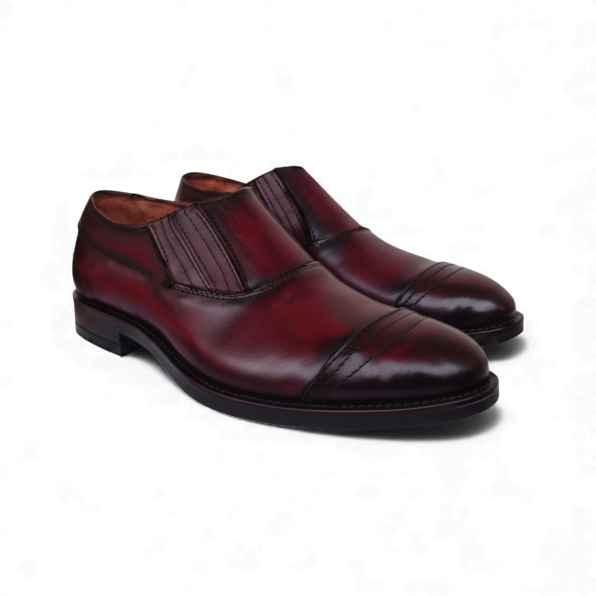 Designed for the modern gentleman who values both refinement and ease, this cap-toe slip-on merges timeless craftsmanship with everyday versatility. Its clean silhouette is elevated by a precisely stitched toe cap and sleek, leather-covered side elastics that ensure a snug yet flexible fit.